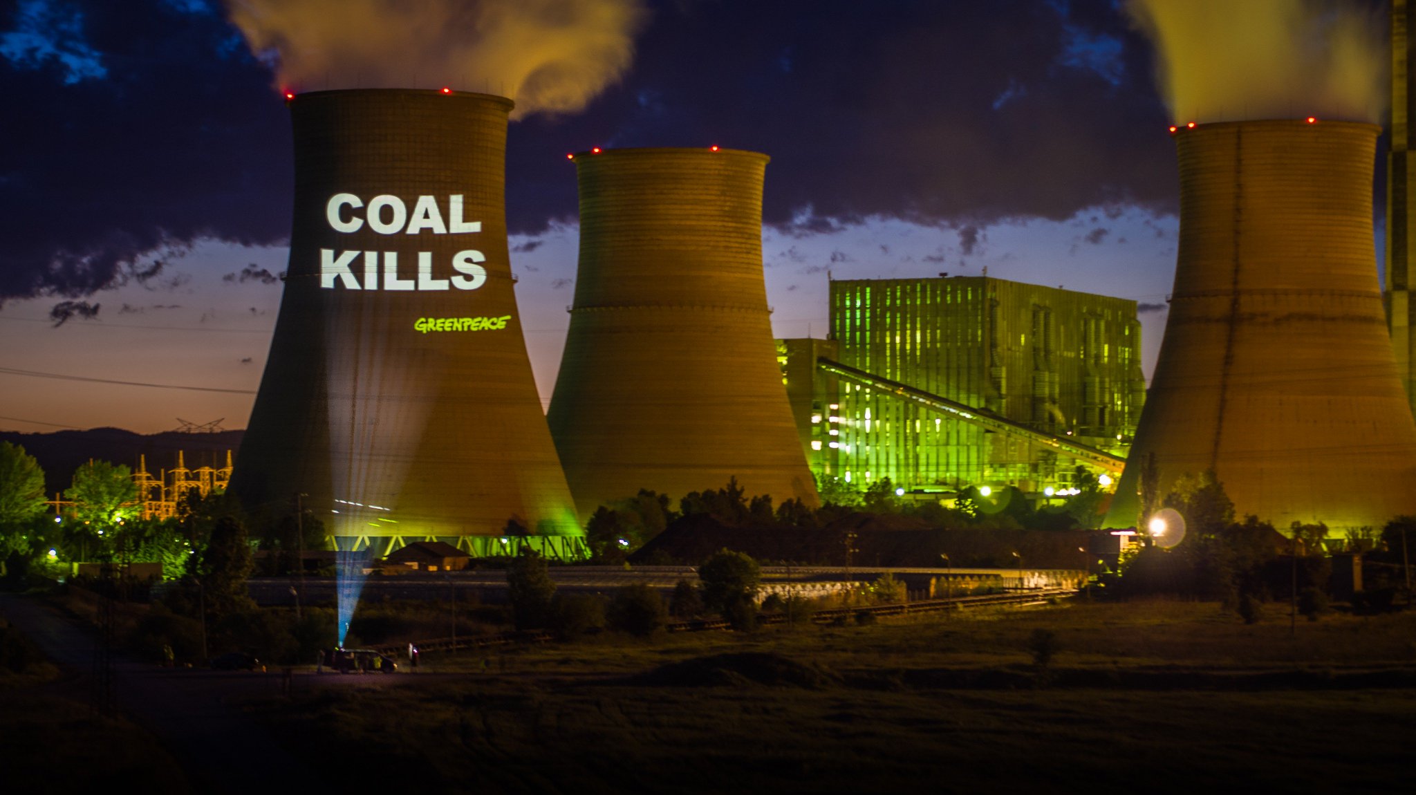 Projection on Bobov Dol coal power plant. Credit / Greenpeace